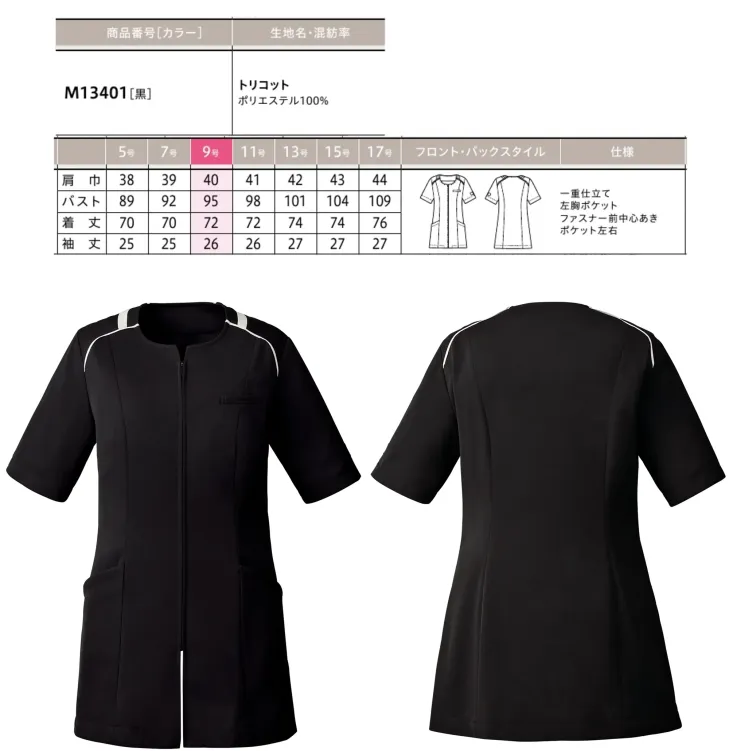 MARY QUANTの知的モードな印象を与えるチュニック。ポリエステル100%トリコット素材を採用。高い伸縮性とキックバック性で動きやすく、適度なハリ感が美しいシルエットをキープ。サロンやクリニックで凛とした存在感を放ちます。