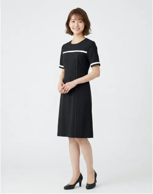 MARY QUANT白のラインを効かせたクラシカルなワンピース。ポリエステル100%トリコットの素材で、しなやかにフィットしながら美しいシルエットを保ちます。