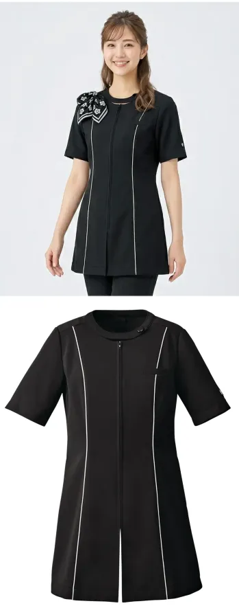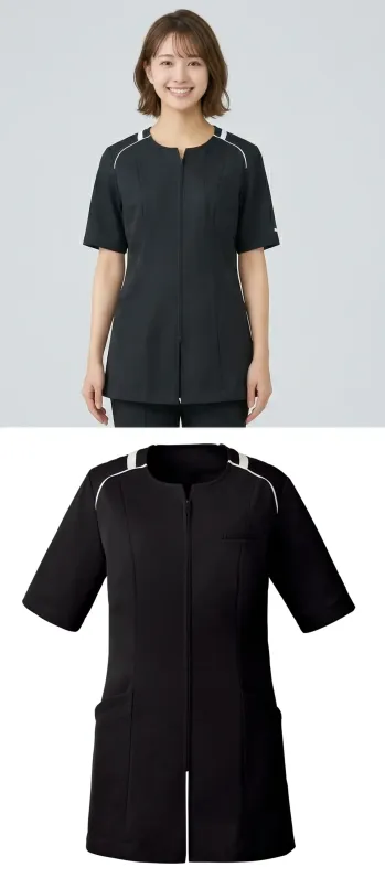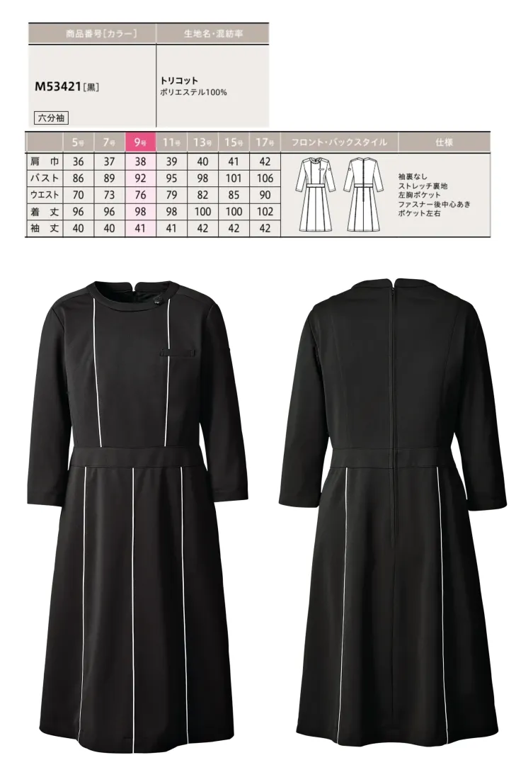 ■形状特長袖裏なし ストレッチ裏地 左胸ポケット ファスナー後中心あき ポケット左右