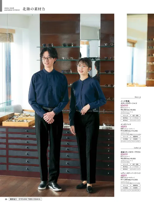 ■形状特長スタンドカラー 長袖 ボタン比翼仕様