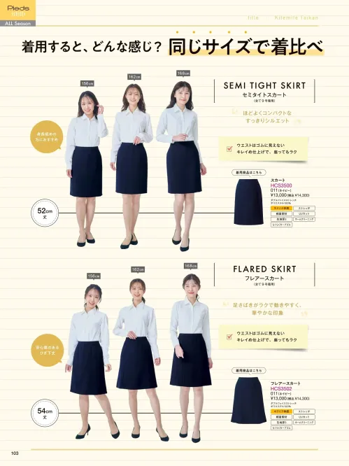 キテミテ体感スカート アイトス (ハイナック)S3500-11のサイズ表