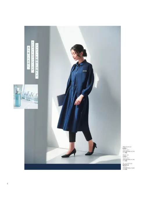 環境に配慮したエコ素材を使用したCounterBiz Plus+シリーズのサロンジャケット。上品な光沢感とやさしい着心地を備え、接客・医療・サービスシーンにふさわしい洗練された印象を演出します。