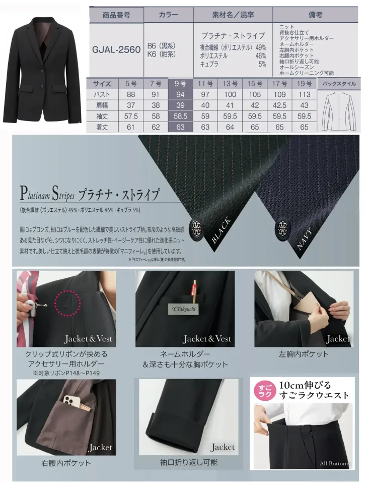 長め丈テーラードジャケット サーヴォGJAL-2560-B6のサイズ表