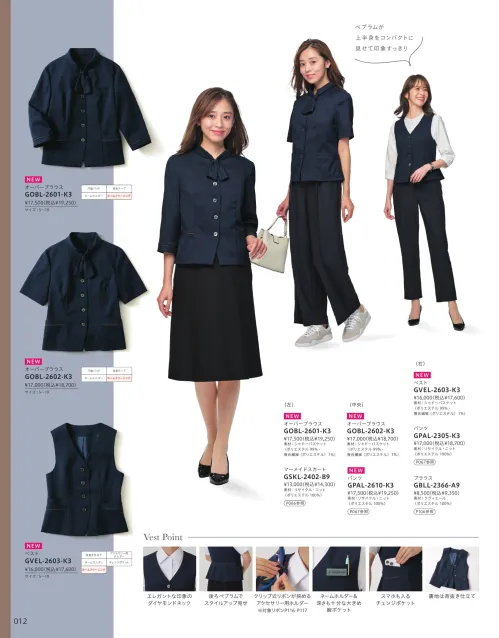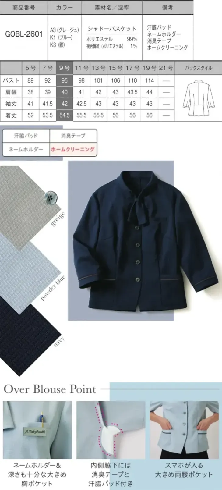 オーバーブラウス(七分袖) サーヴォGOBL-2601-K3のサイズ表