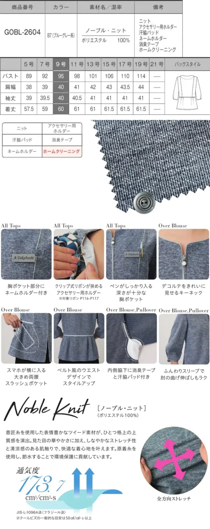 オーバーブラウス(七分袖) サーヴォGOBL-2604-B7のサイズ表