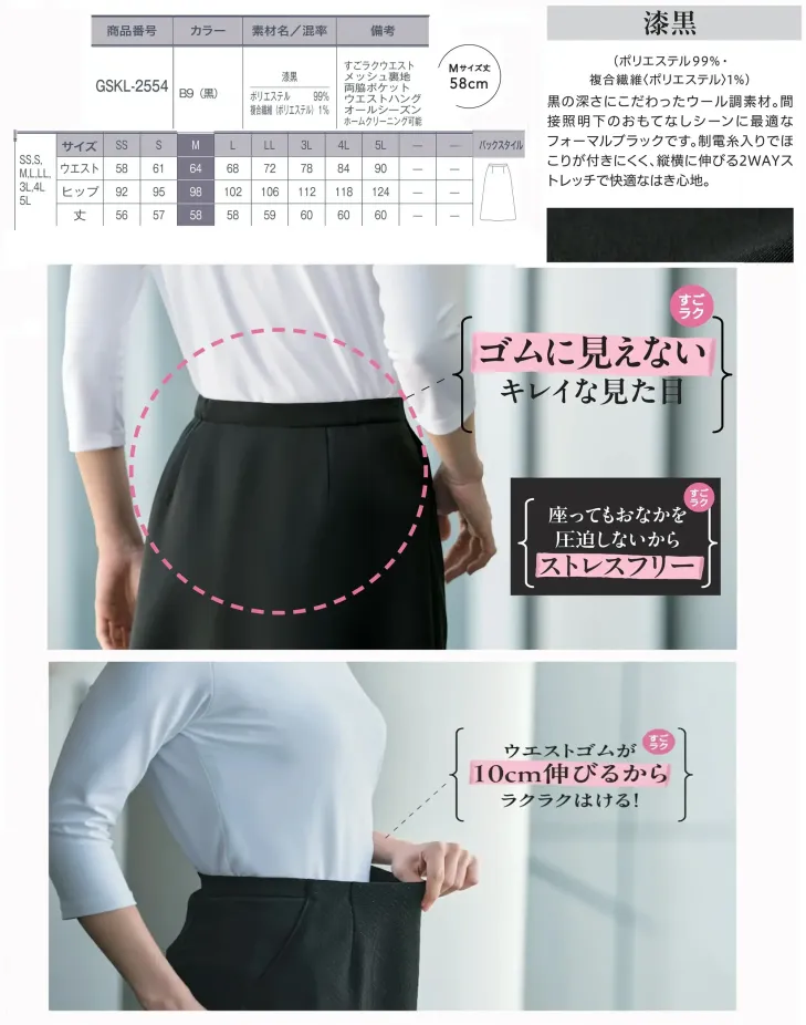 GSKL-2554-B9 Aラインスカート(JET BLACKシリーズ)