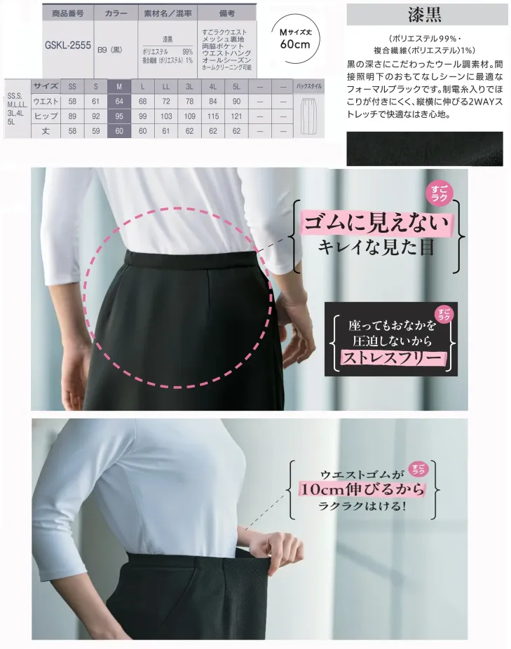 タイトスカート サーヴォGSKL-2555-B9のサイズ表