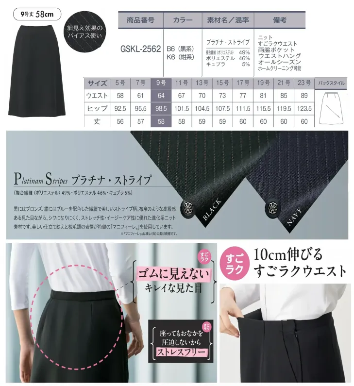 長め丈Aラインスカート サーヴォGSKL-2562-B6のサイズ表