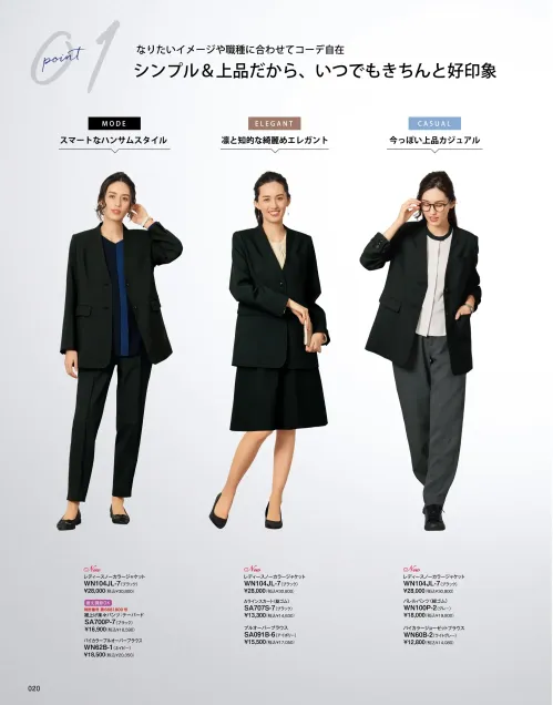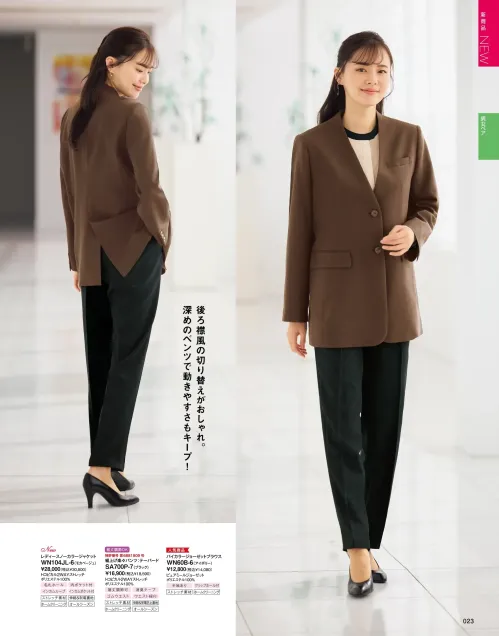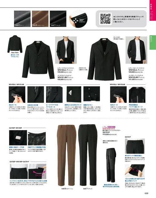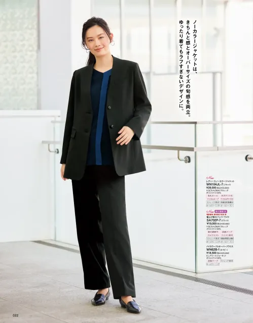 レディースノーカラージャケット 神馬本店WN104JLのサイズ表