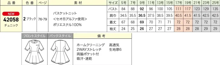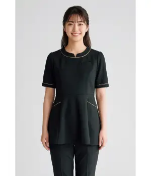 LA BEAUTE COLLECTIONのエレガントチュニック。セオアルファ採用のポリエステル100%バスケットニットと2WAYストレッチで軽やかな動きやすさを実現。ペプラムラインが美しいシルエットを作り上げ上質で華やかな接客スタイルを叶えます。