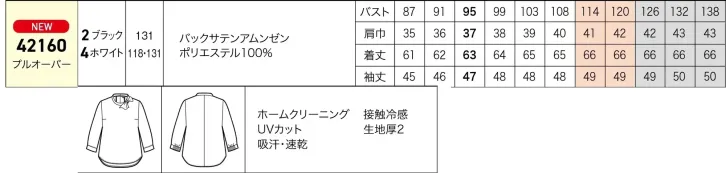 華やぎコンシェルジュ®コレクションのプルオーバーです。ポリエステル100%のバックサテンアムンゼン素材を採用し、UVカット・吸水速乾・接触冷感を備えた快適設計。やわらかなアイボリーと美しいドレープ感が調和し、接客や受付の場で明るく洗練された印象を与えます。