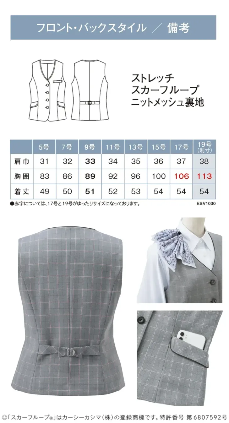 ベスト カーシーカシマESV1030のサイズ表