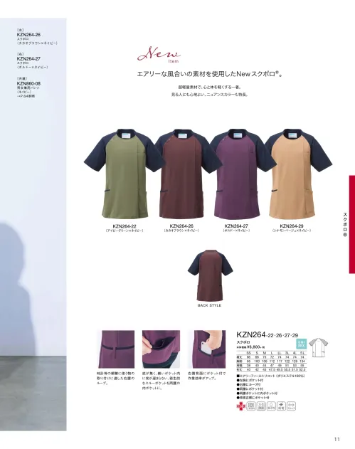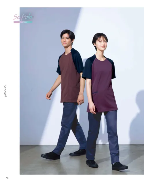 エアリーな風合いの素材を使用したNewスクポロ®です。超軽量ポリエステル素材を採用し、長時間の着用でも身体への負担を軽減します。ニュアンスのある配色デザインで、医療・介護・サービス現場にやさしく調和し、見た目にも清潔感と安心感を与えます。