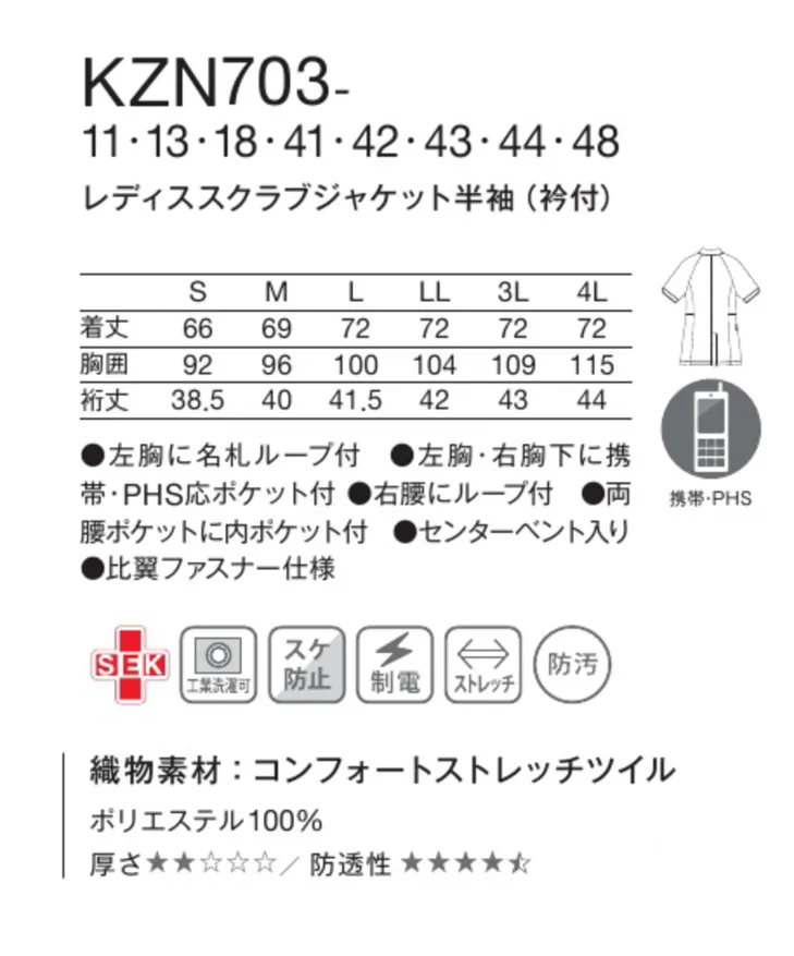 レディススクラブジャケット半袖(衿付) KAZENKZN703-18
