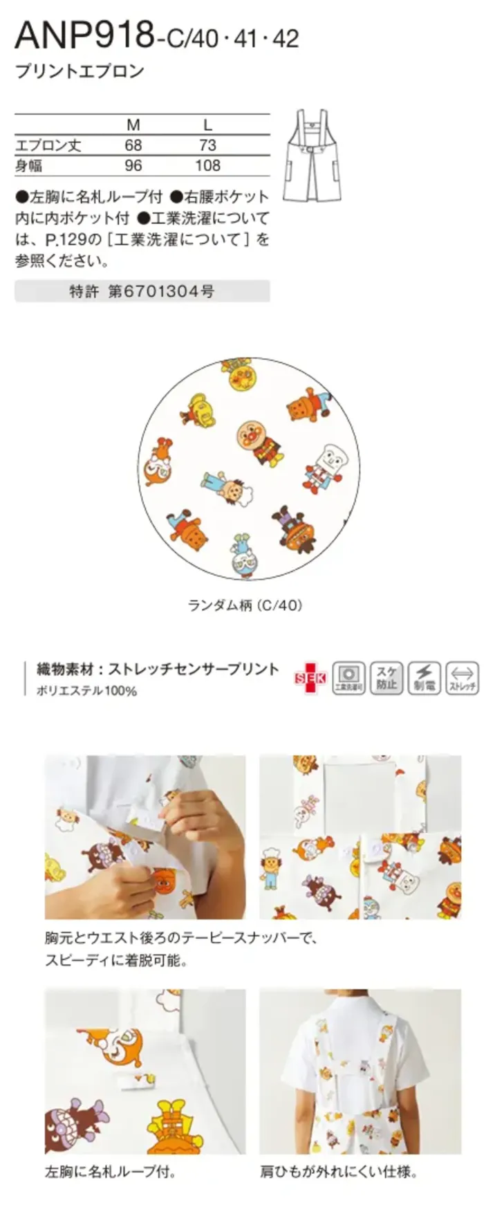 ANP918-C/40 プリントエプロン アンパンマン ランダム柄