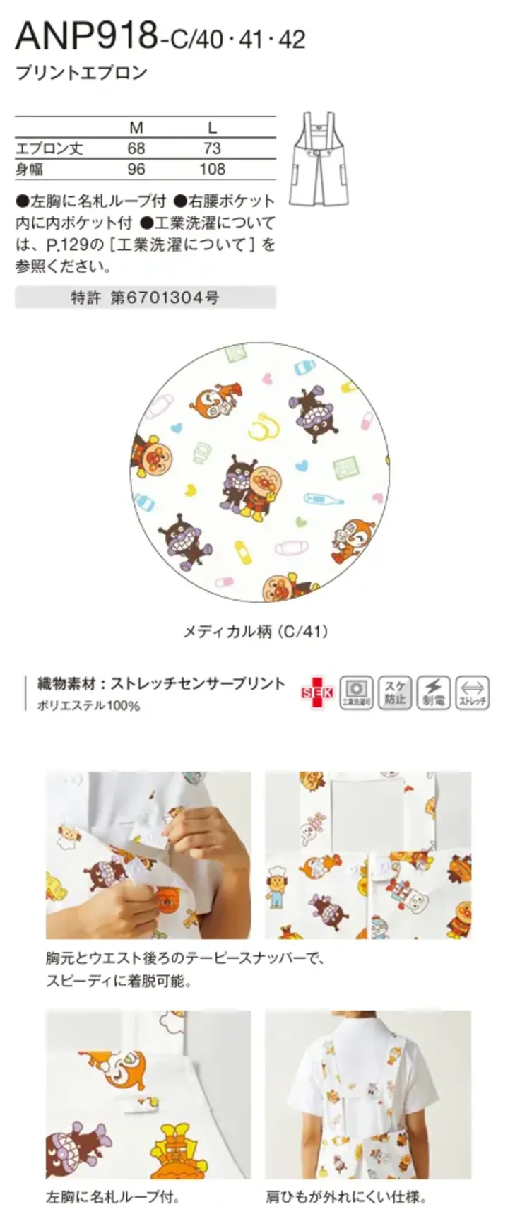 ANP918-C/41 プリントエプロン アンパンマン メディカル柄