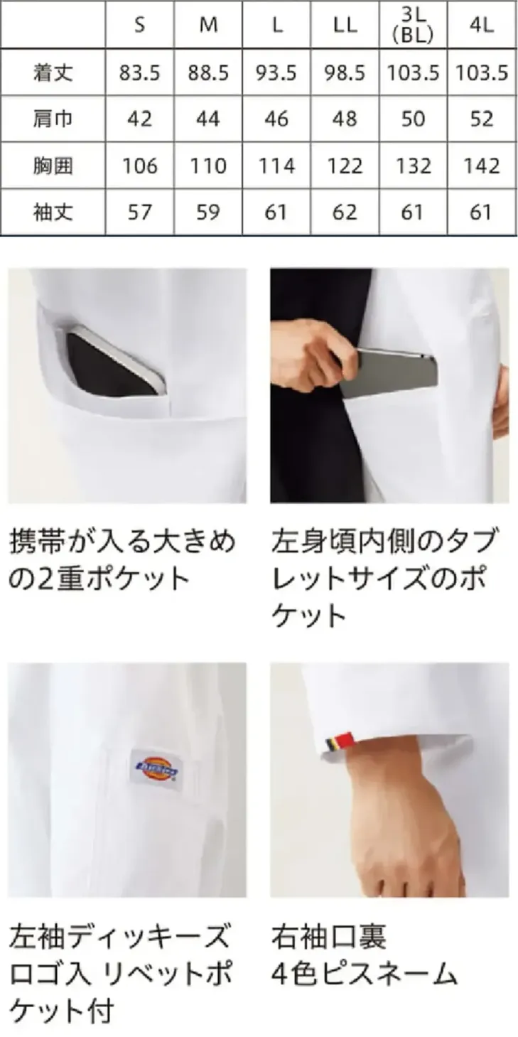 清潔感と機能性を兼ね備えたメンズ向け白衣シングルコートです。高機能TCライトフィックス素材を採用し、ポリエステル80%・綿20%の混率で軽やかな着心地と耐久性を両立。透け防止性や制電性、吸汗性にも配慮され、医療・研究・検査現場で快適に着用できます。動きやすさを考慮した設計で、長時間の業務もストレスなくサポートします。
