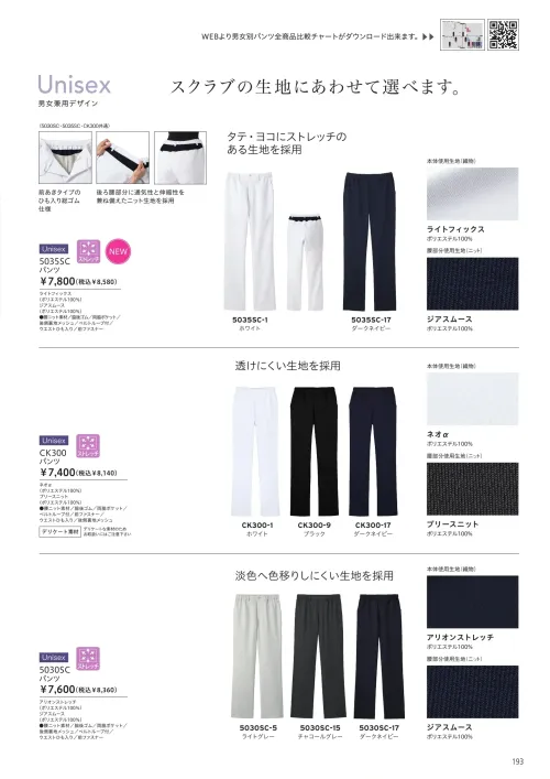 男女兼用デザインのストレッチ機能付き医療用スクラブパンツです。タテ・ヨコにストレッチのある生地を採用し、前あきタイプのひも入り総ゴム仕様で快適な着用感を実現。ポリエステル100%の高品質素材で耐久性と機能性を両立しています。