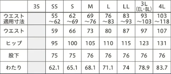 パンツ フォーク5037SC-17のサイズ表
