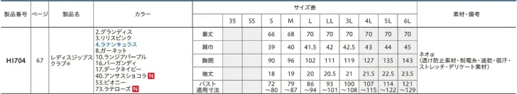 HI704-73 レディスジップスクラブ