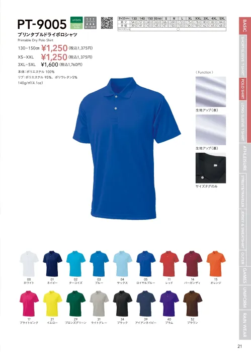 プリンタブルドライポロシャツ wundouPT-9005-B