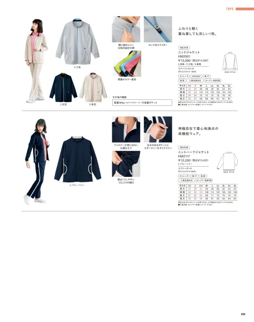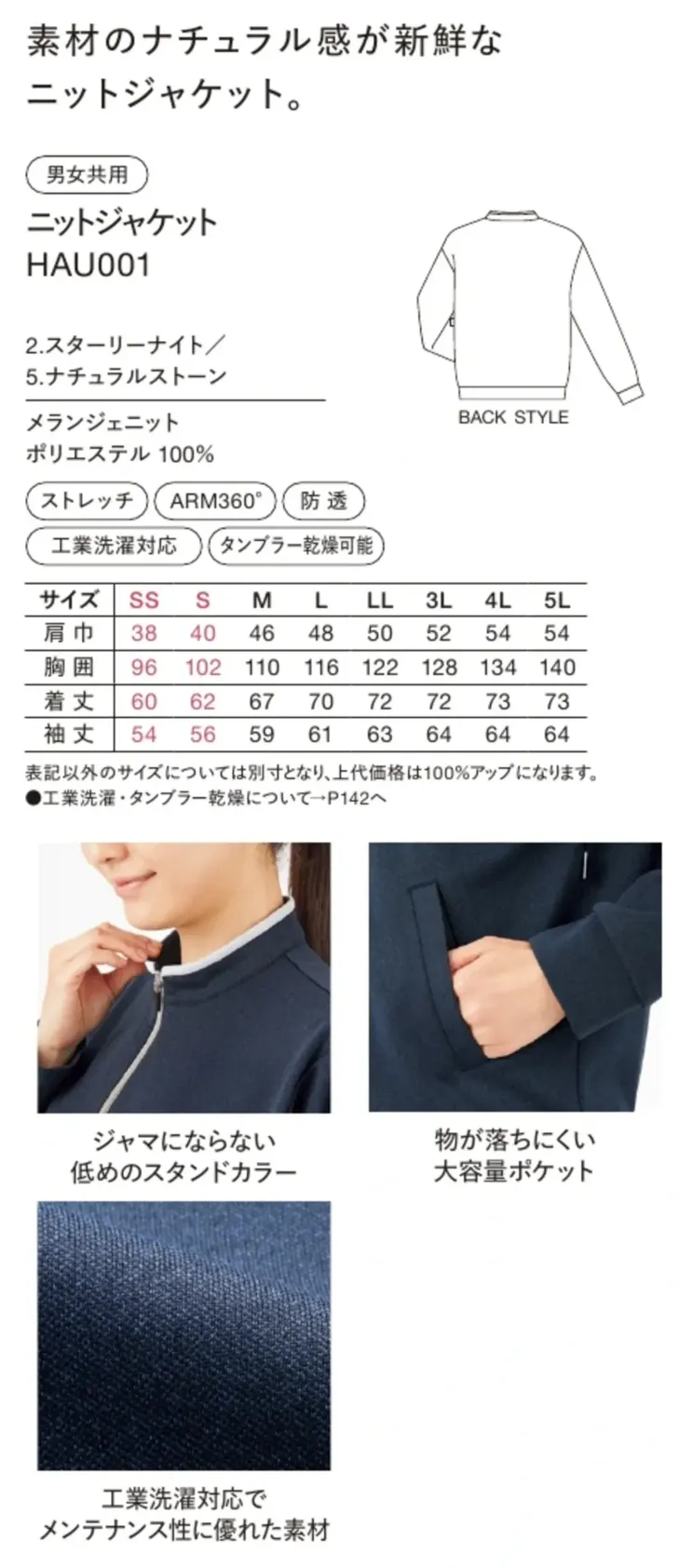 ニットジャケット ハンズオンHAU001のサイズ表