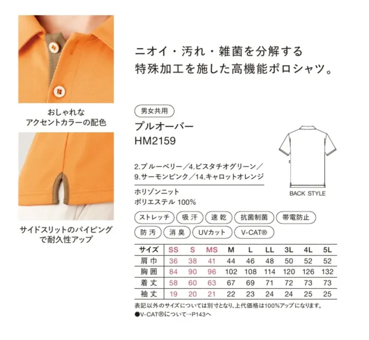 プルオーバー ハンズオンHM2159のサイズ表