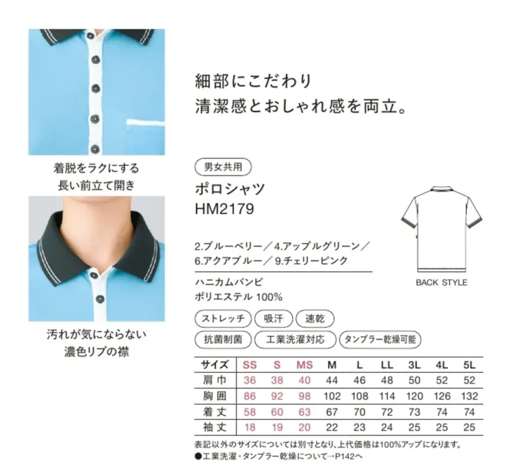 ポロシャツ ハンズオンHM2179のサイズ表