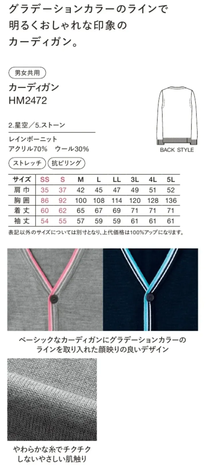カーディガン ハンズオンHM2472のサイズ表