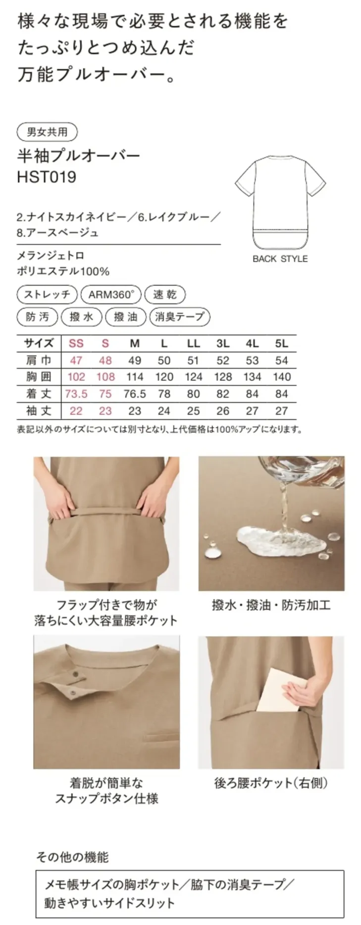 半袖プルオーバー ハンズオンHST019のサイズ表
