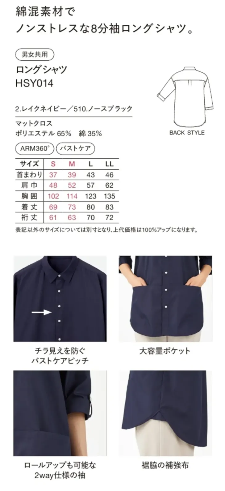 医療白衣com ロングシャツ ハンズオン HSY014 医療白衣の専門店