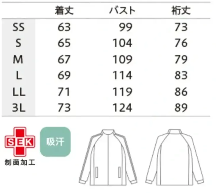 トレーニングジャケット(長袖) 住商モンブランCJ511-5050のサイズ表