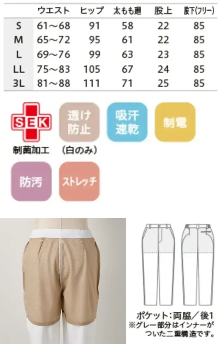 パンツ(ノータック・両脇ゴム) 住商モンブランMB152-10のサイズ表