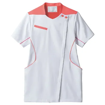 ■形状特長スタンドカラー サイドパイピング 内ポケット付き 半袖 レディース対応