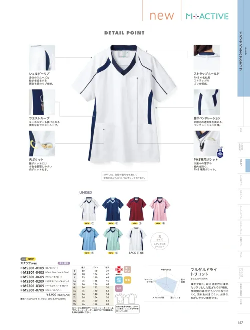 スクラブ(半袖) 住商モンブランMS301-0609のサイズ表