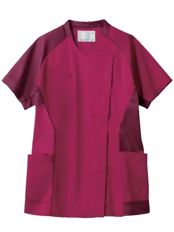 ビビッドカラーとアシンメトリーデザインが目を引く、スポーティな印象のレディーススクラブ。高いストレッチ性を備えたハイパーストレッチトリコット素材を使用し、動きに合わせてしなやかにフィット。現場でのアクティブな動作を快適にサポートします。