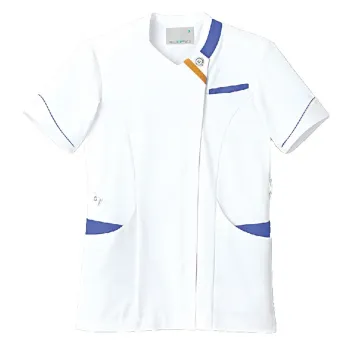 クラシカルとモダンを融合させた男女兼用ジャケットです。微光沢のある上質な生地が顔まわりを明るく見せ清潔感と品の良さを演出します。曲線のカットや配色で柔らかな印象を与え患者様からの印象もアップ。