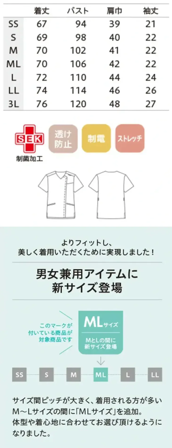 ・サイズ:SS~3L(MLサイズあり)