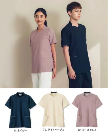 ■素材特長ストレッチ・防透・吸汗速乾・接触冷感・制電・制菌・工業洗濯対応