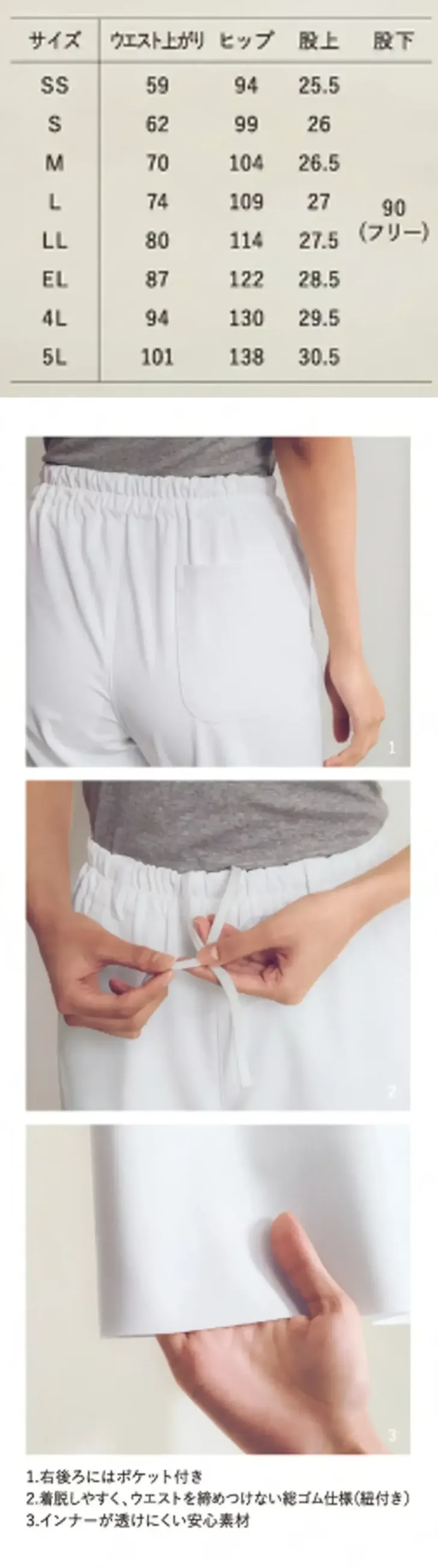 ■形状特長右後ろポケット・総ゴムウエスト・紐付き