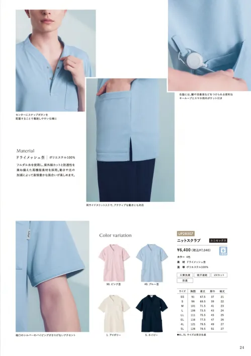 ニットスクラブ 明石スクールユニフォームカンパニーUP28507のサイズ表
