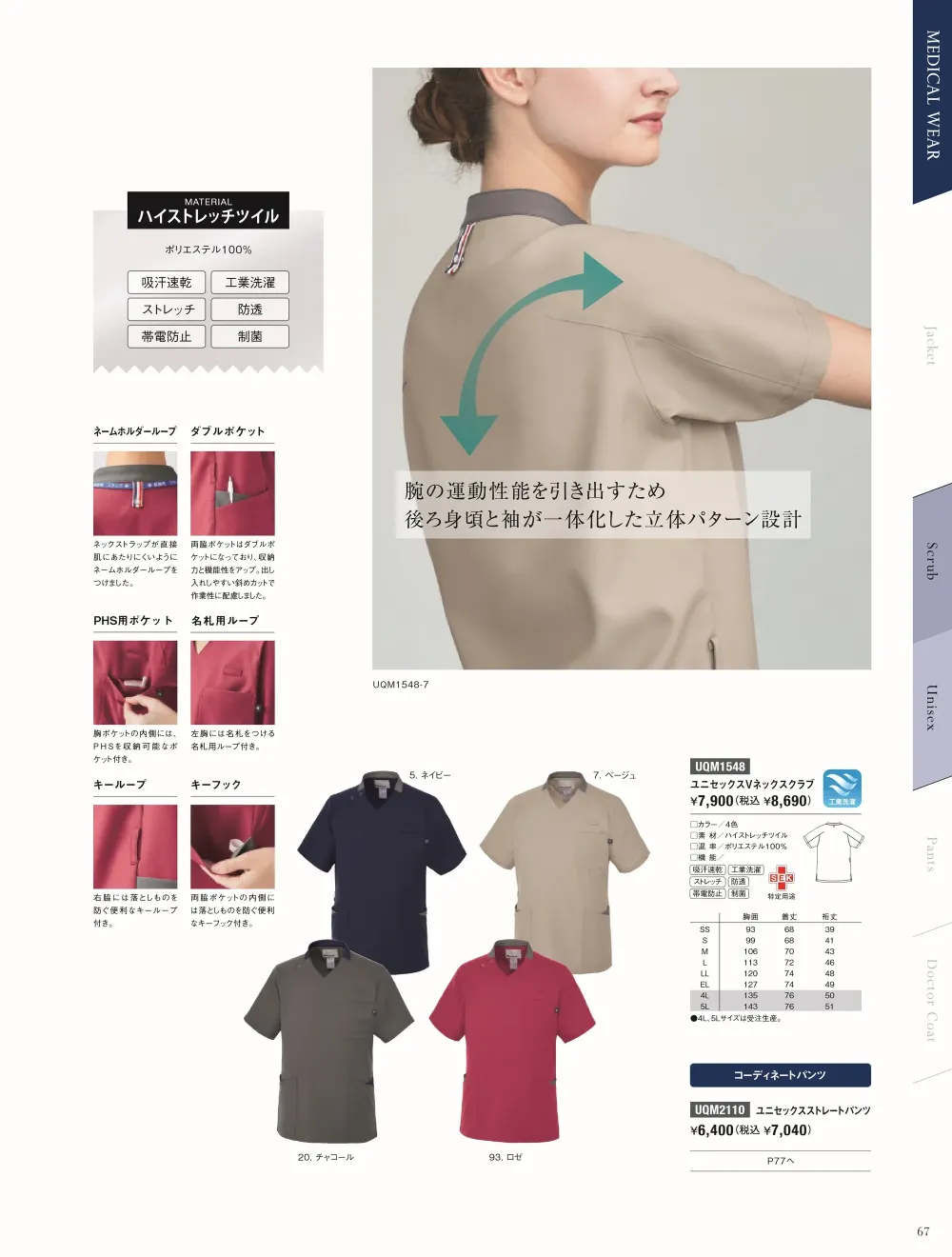 ユニセックスVネックスクラブ ルコックスポルティフUQM1548のサイズ表