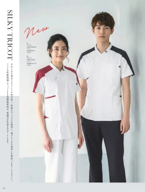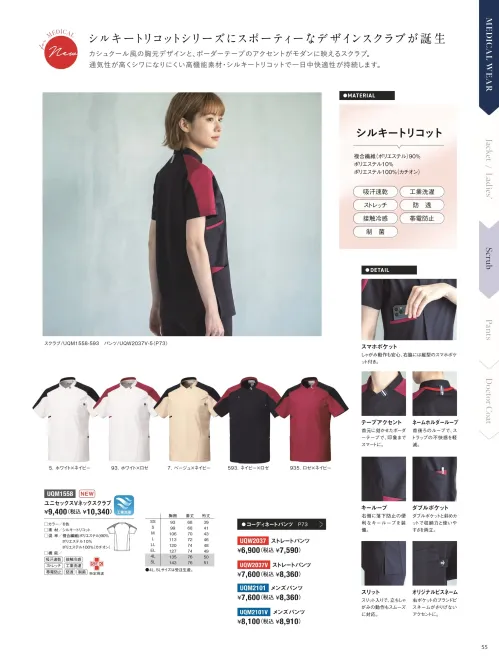 ■素材特長吸汗速乾・工業洗濯・ストレッチ・防透・接触冷感・帯電防止・制菌