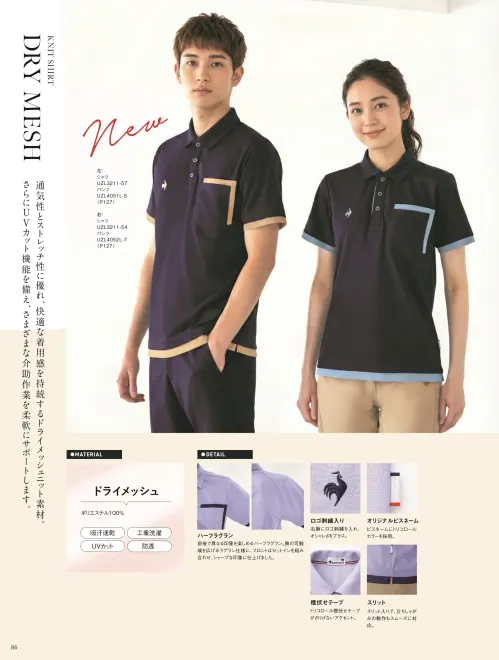 ■素材特長吸汗速乾・工業洗濯・UVカット・防透・ストレッチ