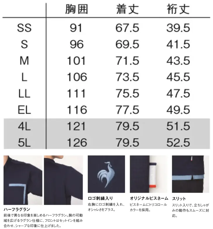 ・サイズ:SS S M L LL EL 4L 5L(4Lと5Lは受注生産)