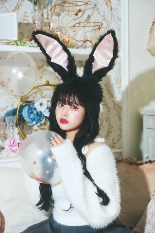 もふもふファーがキュートなウサギのかぶりもの。耳はワイヤー入りで曲げられます。SNS映えバッチリで、ペアでの使用もおすすめです。イベントやフェス、テーマパークやハロウィン等様々なシーンでお使い頂けます。