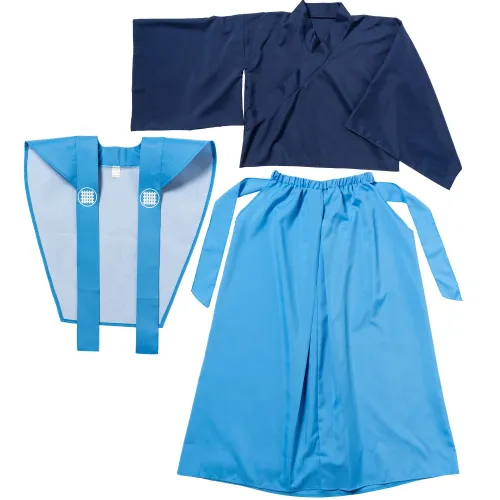 ■形状特長【商品サイズ】袋入りパッケージ有(W300×H450×D55mm)【セット内容】着物、裃、袴風スカート【メイン部分の長さ】着物64、袴風スカート103【開き】着物:かぶり、袴風スカート:ウエストゴム