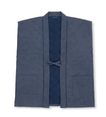 動きやすさと保温性を両立した袖無しタイプの綿入袢天です。たてスラブ織りの表地に綿100%の表地・裏地とポリエステル100%の中綿を使用し、冬の作業や普段着として快適な暖かさを提供します。袖がないデザインで動きやすく、どんな服の上からでも羽織りやすい一着です。