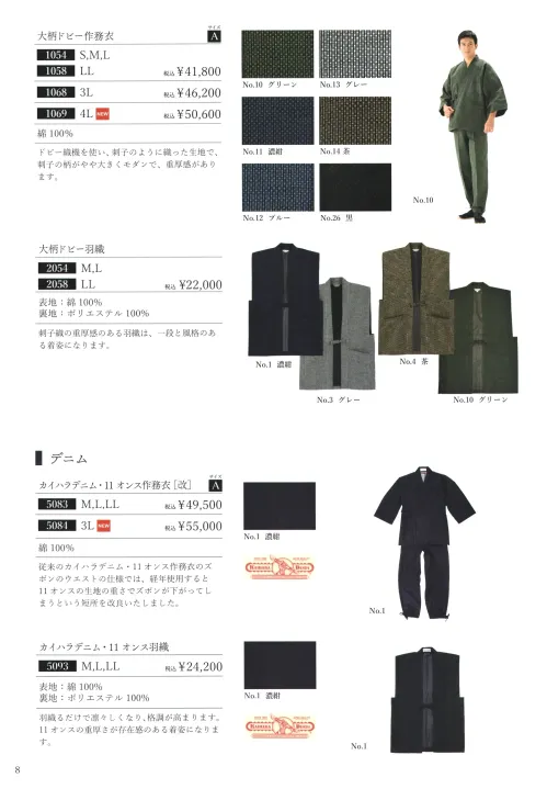 祭り用品jp カイハラデニム・11オンス作務衣[改](3L) 伊田繊維 5084 祭り用品の専門店