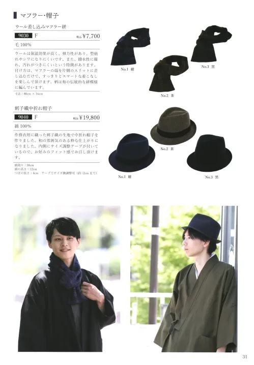 刺子織中折れ帽子 伊田繊維9040のサイズ表
